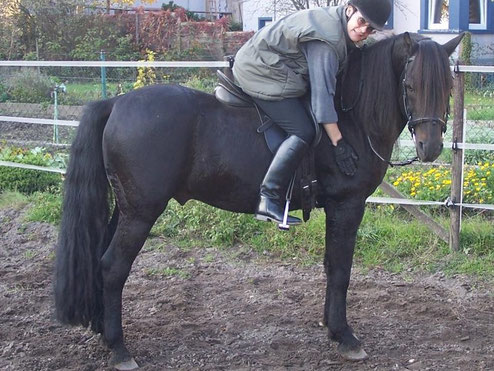 und es kommt doch tatsächlich die schwarze Stute zu Steffi, zwar noch nicht geritten aber zumindest schwarz ;-)