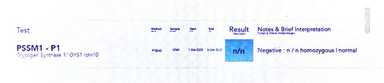 Da es leider auch bei den Morgans, wenn auch nur sehr vereinzelt PSSM1 Fälle gibt