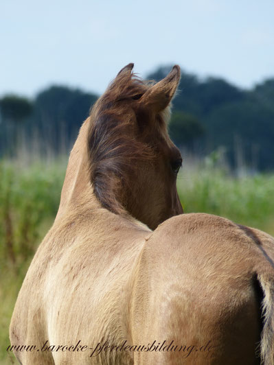 wohl mehr Berber-Blut beschrieben wird. . Sie war eher klein, von kräftiger, nahezu plumper Statur mit viel Behang starker Bemuskelung- vielleicht so, wie wir die heutigen Dales-Ponys